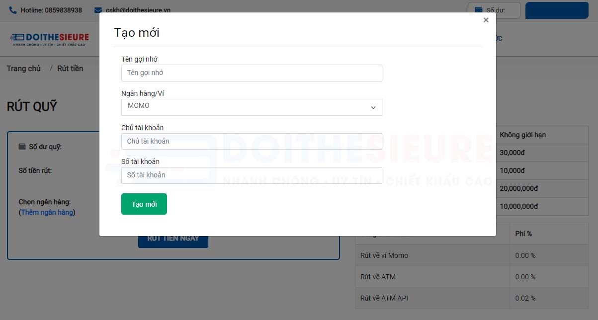 - Bước 2: Đăng ký tài khoản trên hệ thống website đổi thẻ cào Doithesieure.vn
